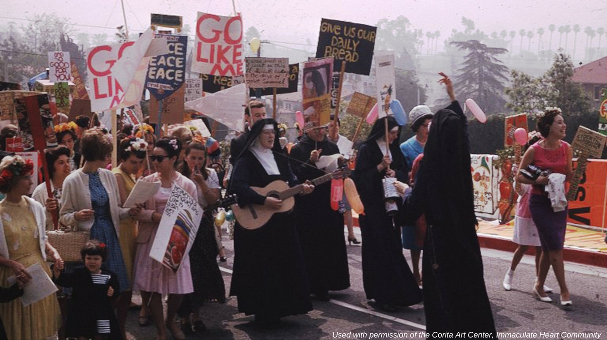 Swept up in the reforms and activism of the 1960s, the Sisters of the Immaculate Heart of Mary took bold steps to interpret the edicts of the Second Vatican Council, and modernize the entrenched traditions of the Catholic church. A highly educated group, they became unlikely feminists as they shed their habits, loosened rigid rules, made art, and put their beliefs in social justice into action on the streets. Most famous among them was Sister Corita, a pop artist second only to Warhol. Their attempts to give women of faith a voice did not sit well with the patriarchy. Facing an ultimatum from their Cardinal, lack of support from Rome, dissent from within their own community, and a healthy dose of self-questioning, these sisters made the excruciating decision to dispense with their sacred vows. Rebel Hearts tells their story through rare archival interviews, colorful animated interpretations of Corita’s art, and current, intimate verité footage. Fifty years later, the ecumenical faith community they formed after the split from the Church continues pushing boundaries, especially with the role of women in religion, as they resist and question authority – setting examples for those who seek ways to speak truth to power.
